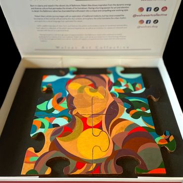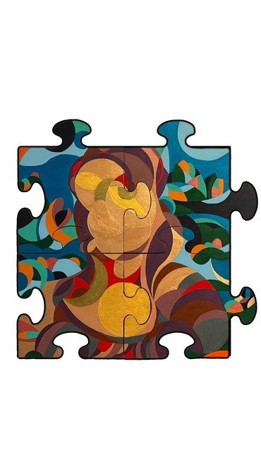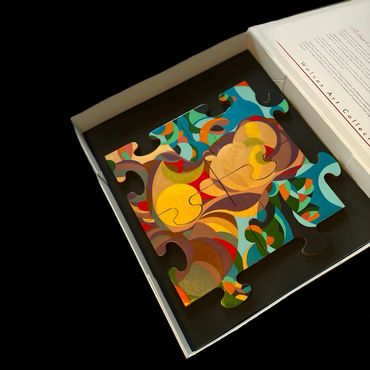 The Abstract Mona Lisa Puzzle, an abstract acrylic painting on wood, unfolds a mesmerizing fusion of tactile artistry and wonder. Each wooden piece, crafted with precision and exquisitely painted ,embodies the enigmatic allure of the iconic portrait. As you play and assemble the puzzle, the tones and abstract contours interlock many ways, forming a harmonious dance that mirrors the essence of the masterpiece. The putting together of the puzzle transforms the act of reconstruction into a journey through the abstract beauty of the timeless Mona Lisa. A playful piece of art that will bring countless aha! moments of joy and beauty.